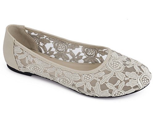 Greatonu Plat de Ballerine Classique de Ronde Punta Lace Mode Femme