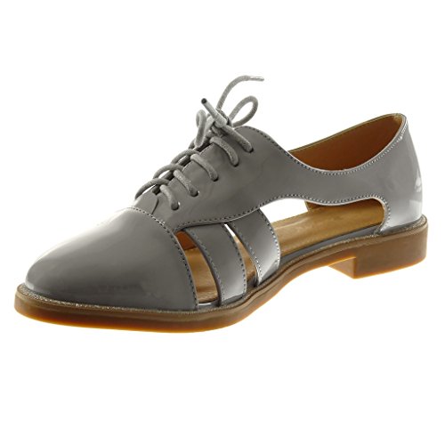 Angkorly vous présente : Chaussure Mode Derbies femme classe, chic, tendance, mode ! Style ouverte Motif verni multi-bride strass Talon bloc 2.5 CM – type de fermeture lacets – Hauteur cheville – Bout de chaussure rond