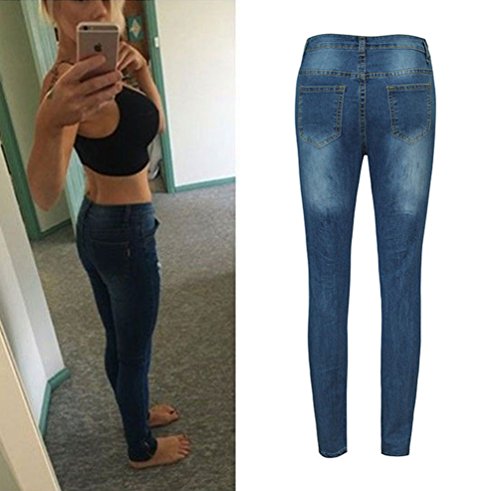 ZKOO Femme Denim Pantalons Taille Haute Jeans Slim Leggings Collant Crayon Casual Déchiré Pants