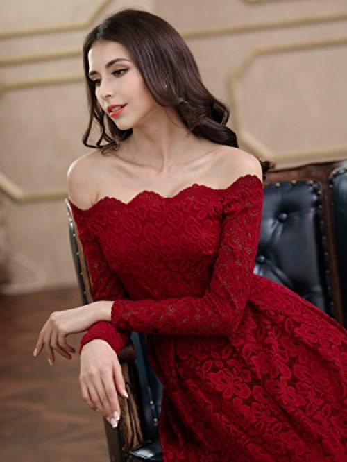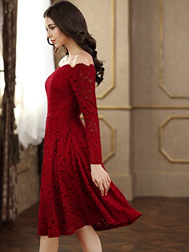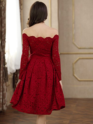 MIUSOL Robe de Soirée Bustier Dentelle Cocktail Manches Longues Femme,Fleurs Robe de Fete Col Rond Vintage Dos nu Femme Sexy